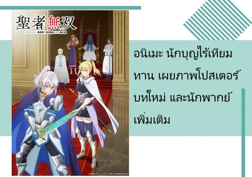 อนิเมะ นักบุญไร้เทียมทาน หนทางรอดในต่างโลกของมนุษย์เงินเดือน (Seija Musou: Salaryman, Isekai de Ikinokoru Tame ni Ayumu Michi) เผยภาพโปสเตอร์บทใหม่ที่จะเริ่มออกอากาศตั้งแต่ตอนที่ 7 ในวันที่ 31 สิงหาคมเป็นต้นไป