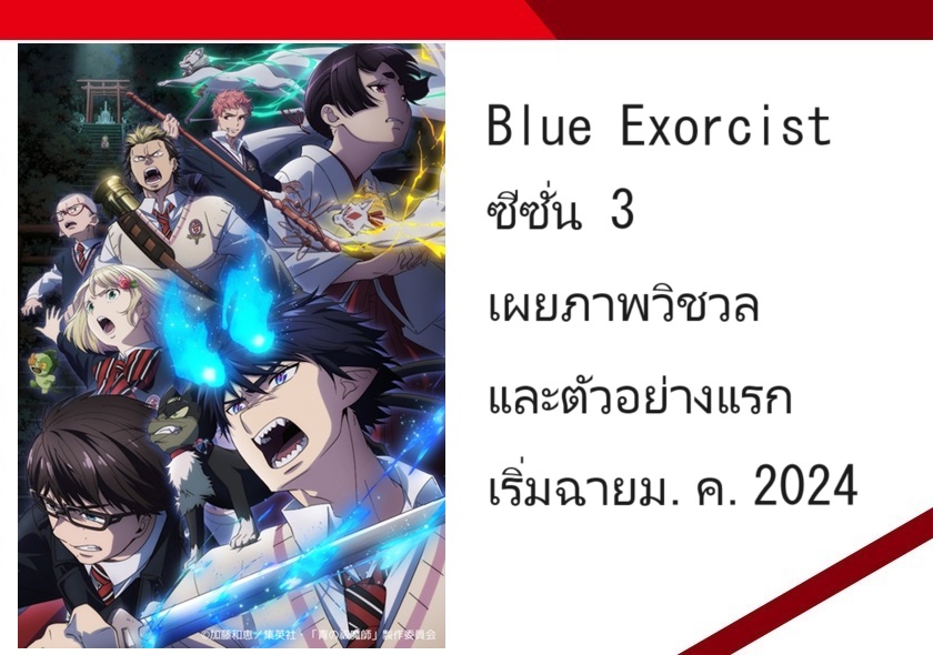 Blue Exorcist ซีซั่น 3 เผยภาพวิชวลและตัวอย่างแรก เริ่มฉายม.ค.2024