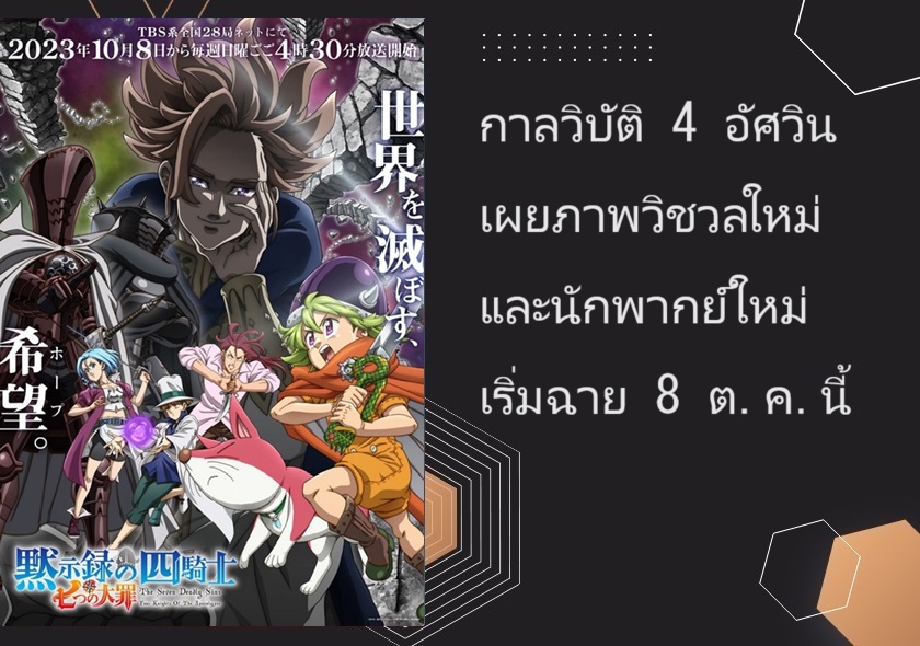 ทวิตเตอร์ทางการของอนิเมะ กาลวิบัติ 4 อัศวิน เผยภาพวิชวลใหม่ นักพากย์ใหม่ และผู้ร้องเพลง OP-ED ออกมาแล้ว