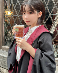 โพสต์ที่สอง ยังคงเป็นภาพของคุณฟุคาดะในชุดเสื้อเชิ้ตสีขาว กระโปรงสีเทาเช่นเดิม เพิ่มเติมคือในมือถือไม้กายสิทธิ์ และสวมเสื้อคลุมบ้านกริฟฟินดอร์จากเรื่องแฮร์รี่ พอตเตอร์ โดยมีฉากหลังเป็นรถด่วนฮอกวอตส์ และนายสถานีที่ยืนกางร่มท่ามกลางหิมะที่ตกโปรยปราย พร้อมแคปชั่นว่า "เข้าเรียนที่โรงเรียนเวทมนตร์ค่ะ บัตเตอร์เบียร์อร่อยมาก"