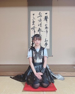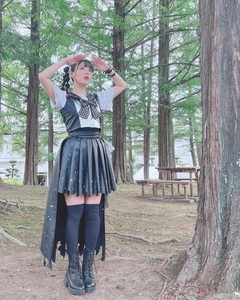 คุณอุเอซากะได้โพสต์รูปตัวดแงในชุดปกกะลาสีสีขาวตัดกับสีเทาและกระโปรงสีเทา ที่ปกกะลาสีติดโบว์ขนาดใหญ่ลายตารางหมากรุก ส่วนตามปกกะลาสีและบนกระโปรงประดับประดาไปด้วยเข็มกลัดสีเงิน ท่อนล่างสวมรองเท้าบูทสีดำพร้อมถุงเท้าที่ยาวถึงหัวเข่า