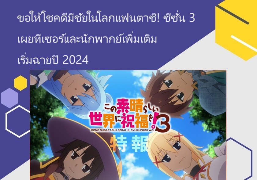 อนิเมะ ขอให้โชคดีมีชัยในโลกแฟนตาซี! ซีซั่น 3 มีกำหนดออกอากาศภายในปี 2024