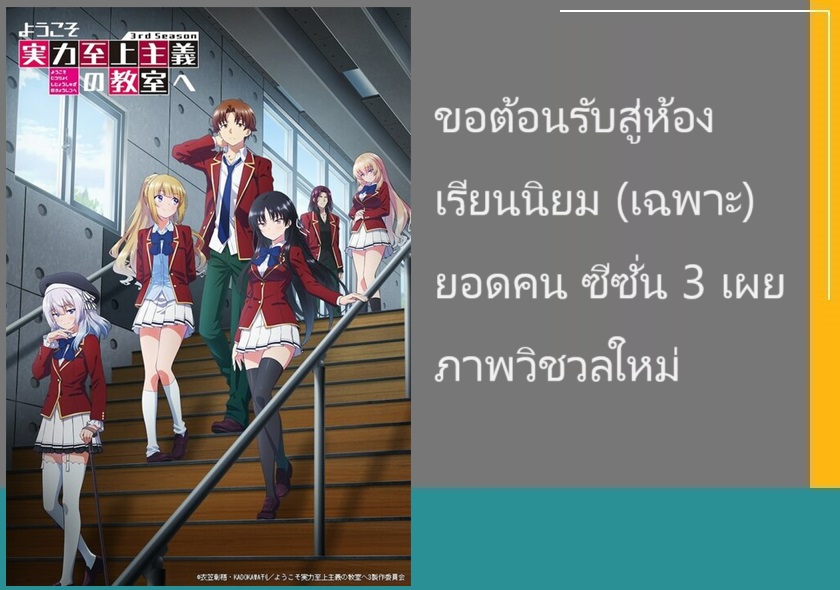 ทวิตเตอร์ทางการของอนิเมะ ขอต้อนรับสู่ห้องเรียนนิยม (เฉพาะ) ยอดคน (Youkoso Jitsuryoku Shijou Shugi no Kyoushitsu e) เผยภาพวิชวลใหม่ซีซั่น 3 ออกมาแล้ว