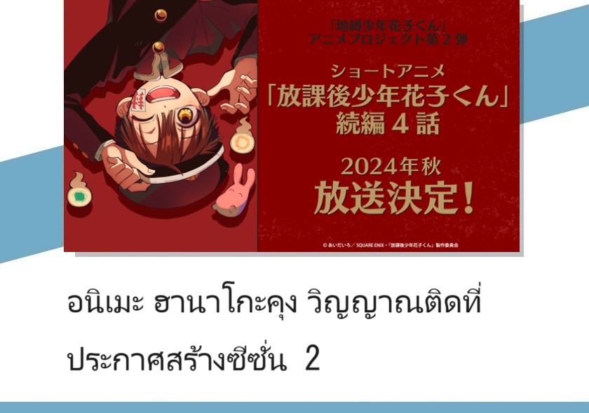 อนิเมะ ฮานาโกะคุง วิญญาณติดที่ ประกาศสร้างซีซั่น 2