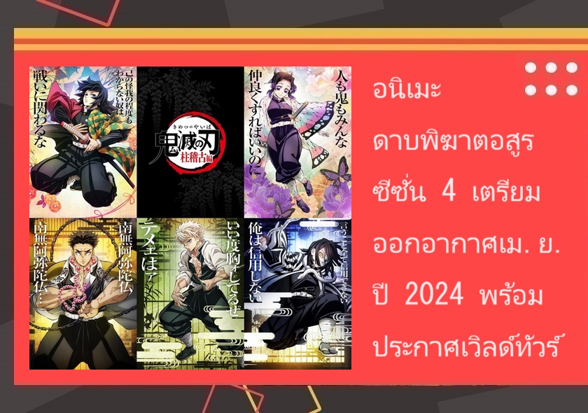 อนิเมะ ดาบพิฆาตอสูร ซีซั่น 4 เตรียมออกอากาศเม.ย.ปี 2024 พร้อมประกาศเวิลด์ทัวร์