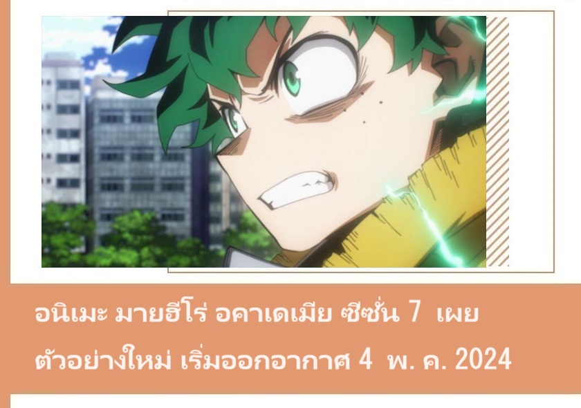 ทวิตเตอร์ทางการของอนิเมะ มายฮีโร่ อคาเดเมีย (Boku no Hero Academia) ได้เผยตัวอย่างใหม่ของตัวอนิเมะซีซั่น 7 ออกมาแล้ว