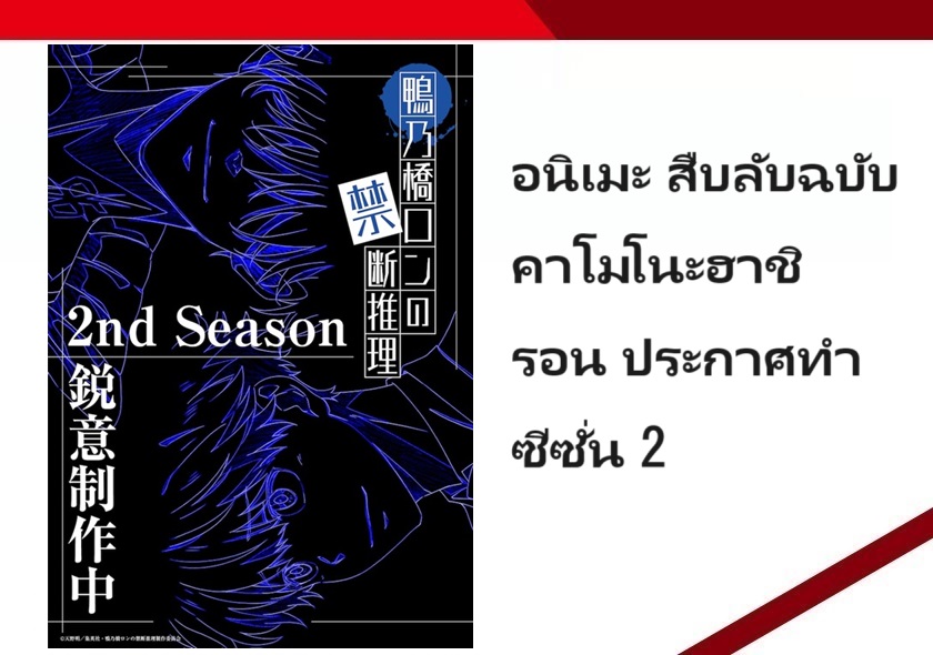อนิเมะ สืบลับฉบับคาโมโนะฮาชิ รอน (Kamonohashi Ron no Kindan Suiri) ประกาศไปต่อซีซั่น 2 อย่างเป็นทางการแล้ว