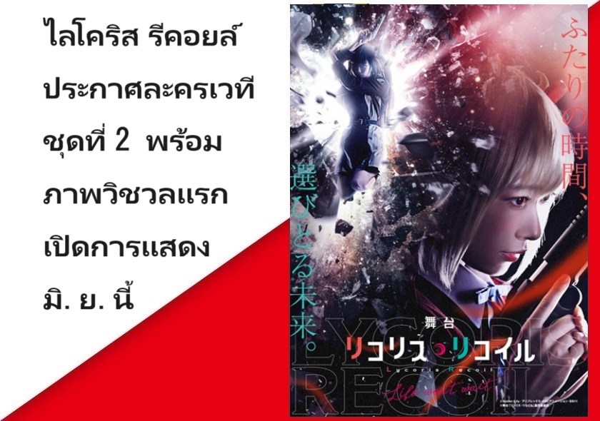 ไลโคริส รีคอยล์ (Lycoris Recoil) อนิเมะออริจินัลของค่าย Aniplex ประกาศทำละครเวทีชุดที่ 2 ในชื่อ "Lycoris Recoil: Life won’t wait." พร้อมกับเผยภาพวิชวลแรกออกมาแล้ว