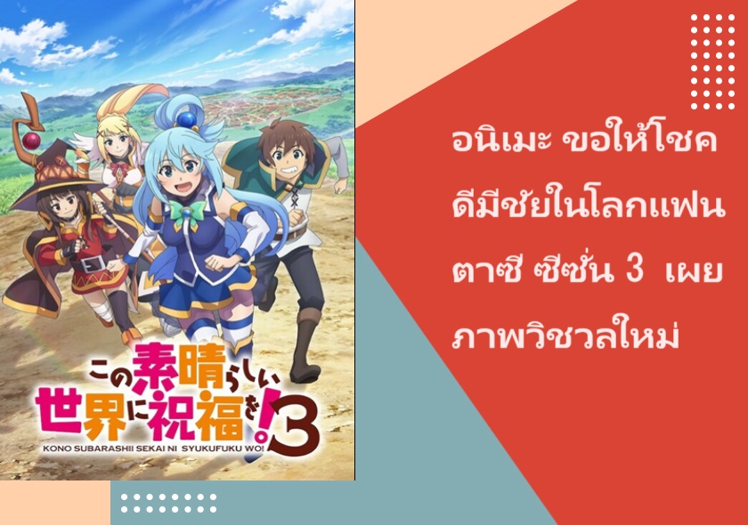 ทวิตเตอร์ทางการของอนิเมะ ขอให้โชคดีมีชัยในโลกแฟนตาซี! (Kono Subarashii Sekai ni Shukufuku wo!) ได้เผยภาพวิชวลใหม่ของทีวีอนิเมะซีซั่น 3 ออกมาแล้ว