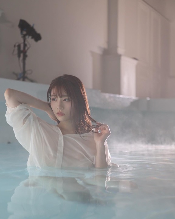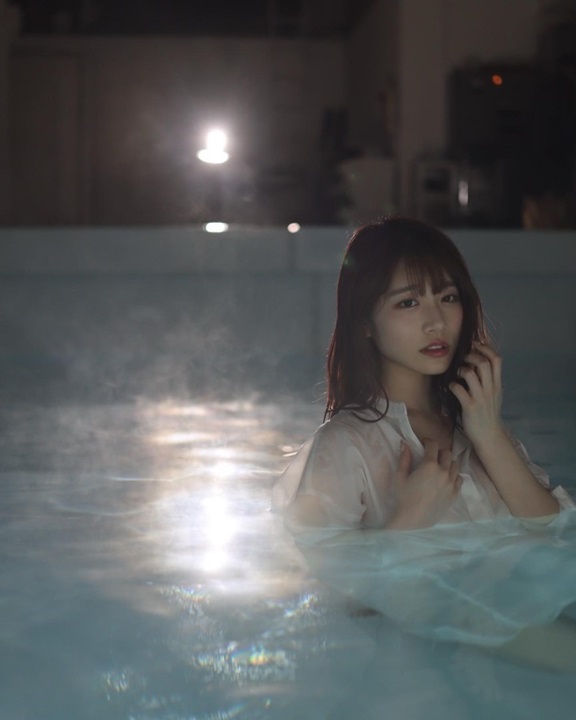 คาวาคิตะ ไซกะ เผยช็อตเด็ดโชว์ความสวยเซ็กซี่ในสระว่ายยามค่ำคืน