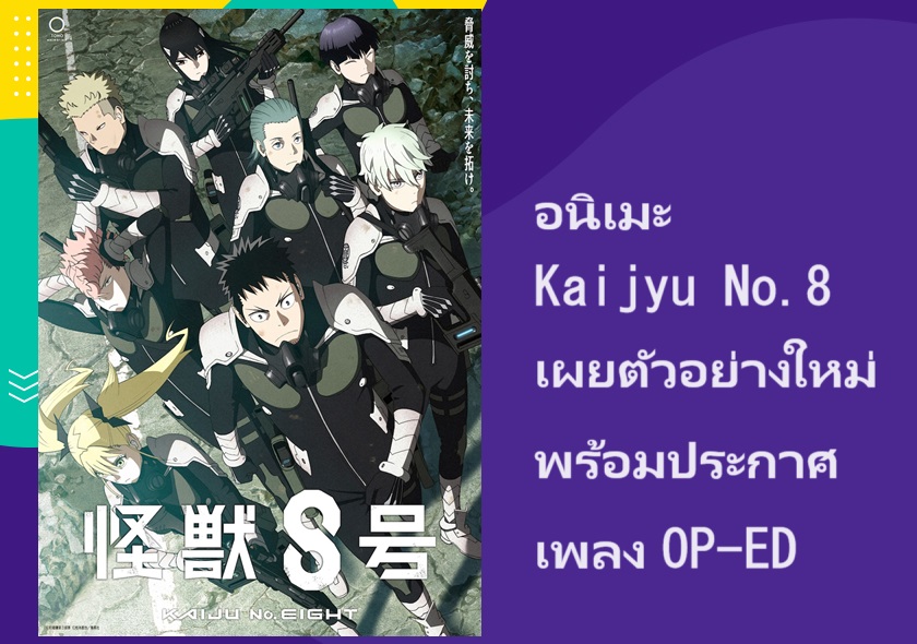 TOHO Animation ได้ปล่อยตัวอย่างใหม่ของอนิเมะ Kaijyu No.8 (ไคจู หมายเลข 8) ที่มาพร้อมเพลง OP-ED และนักพากย์เพิ่มเติมออกมาแล้ว