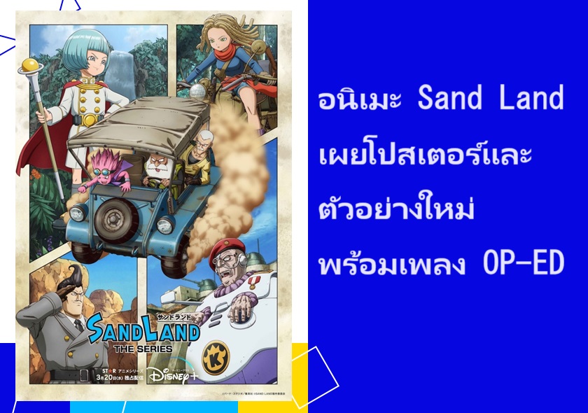 X (ทวิตเตอร์) ทางการของ Disney+ ได้เผยโปสเตอร์และตัวอย่างอย่างใหม่ของอนิเมะ Sand Land: The Series ที่มาพร้อมกับเพลง OP-ED ออกมาให้รับชมกันแล้ว