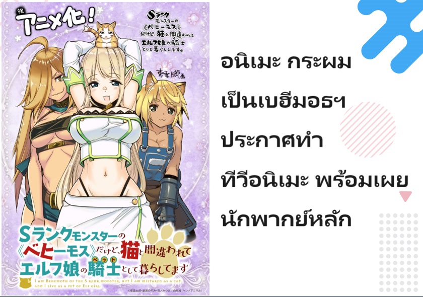 มังงะ กระผมเป็น<เบฮีมอธ>มอนสเตอร์ S แรงค์ แต่ตอนนี้ถูกเอลฟ์เลี้ยงในฐานะ(แมว)ครับ (S-Rank Monster no "Behemoth" dakedo, Neko to Machigawarete Elf Musume no Pet toshite Kurashitemasu?) ประกาศทำทีวีอนิเมะอย่างเป็นทางการแล้ว