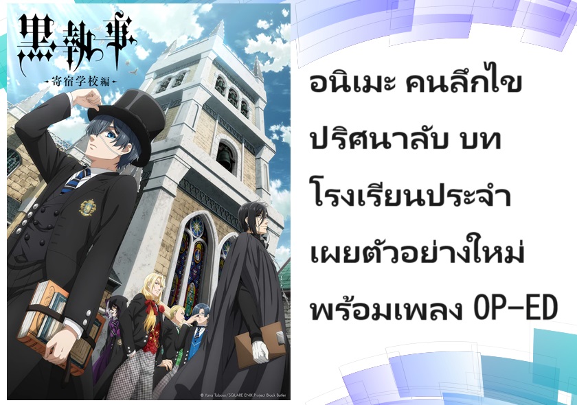 อนิเมะ คนลึกไขปริศนาลับ ซีซั่น 4 บทโรงเรียนประจำ (Kuroshitsuji: Kishuku Gakkou-hen) เผยตัวอย่างใหม่ที่มาพร้อมเพลง OP-ED ออกมาให้ชมกันแล้ว