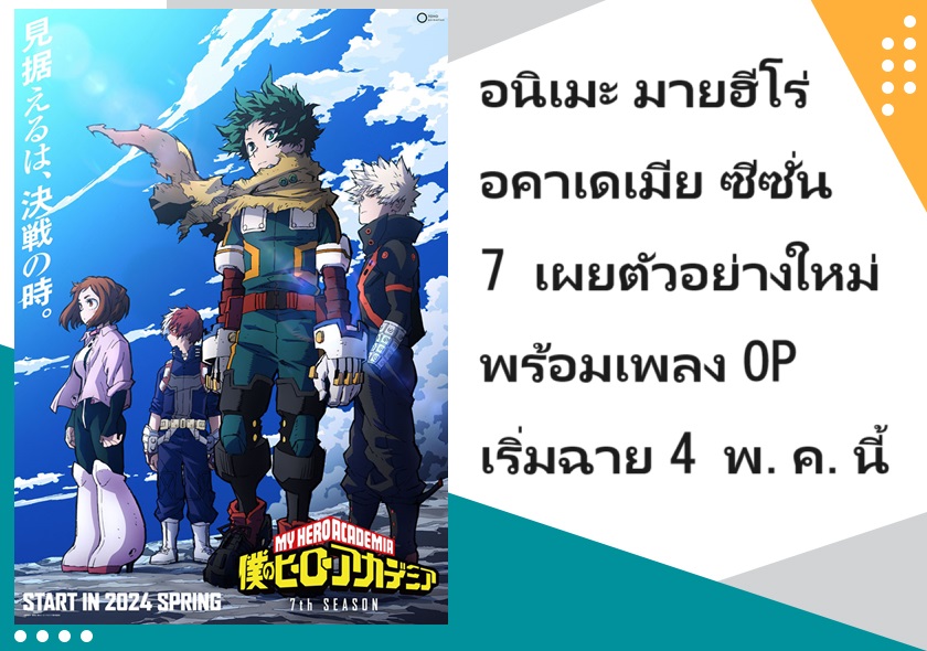 อนิเมะ มายฮีโร่ อคาเดเมีย ซีซั่น 7 เผยตัวอย่างใหม่พร้อมเพลง OP เริ่มฉาย 4 พ.ค.นี้