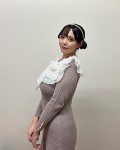 คุณโคอิบุจิโพสต์ภาพตัวเองในชุดเดรสถักโครเชต์สีม่วงเข้ารูปที่เผยให้เห็นสัดส่วนโค้งเว้า ประดับด้วยปกคอเสื้อลูกไม้แบบชุดเมด พร้อมแคปชั่นว่า "โมโมนะโครเชต์"