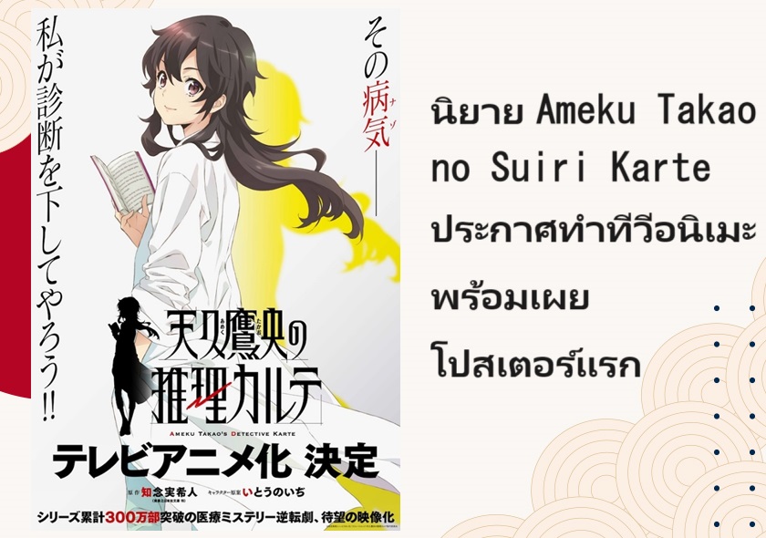 นิยาย Ameku Takao no Suiri Karte (Ameku Takao's Detective Karte) ประกาศทำทีวีอนิเมะ พร้อมกับเผยโปสเตอร์แรกออกมาแล้ว