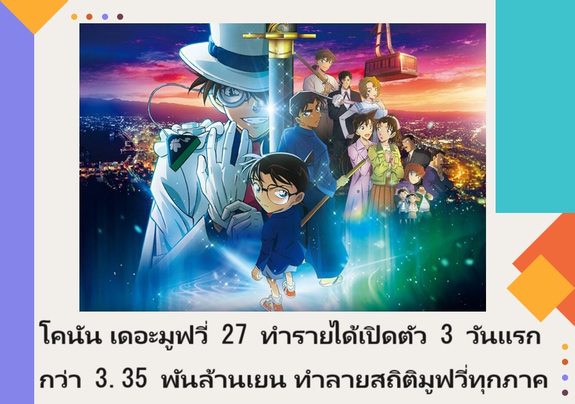 โคนัน เดอะมูฟวี่ 27 ทำรายได้เปิดตัว 3 วันแรกกว่า 3.35 พันล้านเยน ทำลายสถิติมูฟวี่ทุกภาค