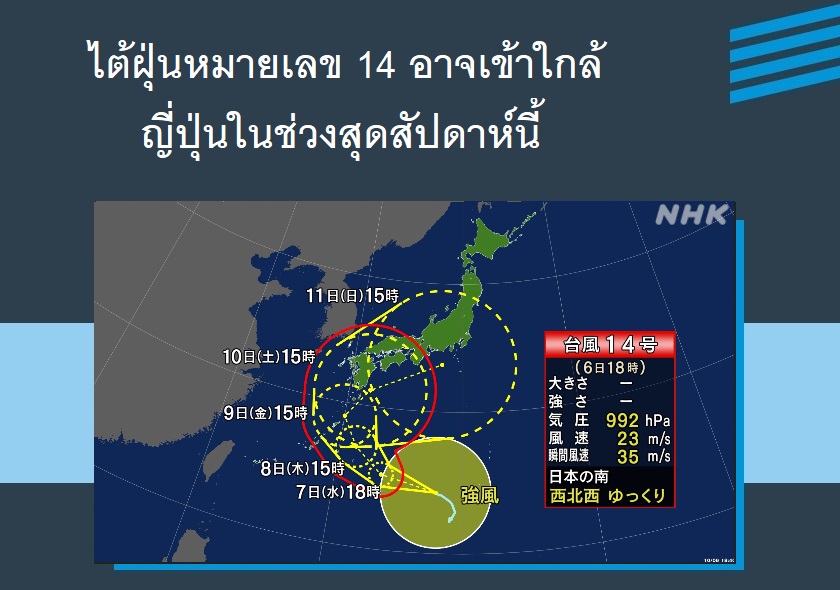 ไต้ฝุ่นหมายเลข 14 อาจเข้าใกล้ญี่ปุ่นในช่วงสุดสัปดาห์นี้