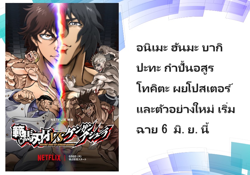 ภาพยนตร์อนิเมะ ฮันมะ บากิปะทะกำปั้นอสูร โทคิตะ มีกำหนดสตรีมมิ่งทั่วโลกผ่านทางแพลตฟอร์ม Netflix ในวันที่ 6 มิถุนายนนี้