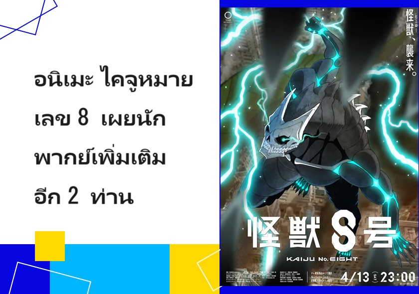 อนิเมะ ไคจูหมายเลข 8 เผยนักพากย์เพิ่มเติมอีก 2 ท่าน