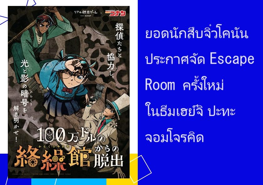 ยอดนักสืบจิ๋วโคนัน ประกาศจัดอีเว้นท์ Escape Room (เกมไขปริศนาที่มีการจำลองเหตุการณ์หรือสถานการณ์ต่างๆ โดยให้ผู้เล่นหาทางออกจากห้องๆ หนึ่ง) ครั้งใหม่ร่วมกับทาง SCRAP ในชื่อ "100-Man Doru No Karakurikan Kara No Dasshutsu" (การหลบหนีออกจากคฤหาสน์กลไกหนึ่งล้านดอลลาร์) พร้อมเผยภาพวิชวลออกมาให้ชมแล้ว