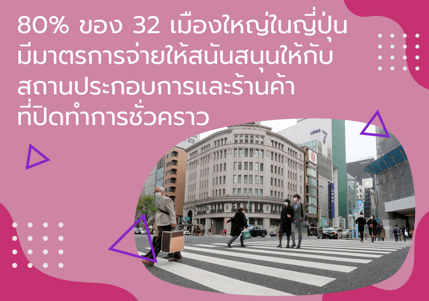 80% ของ 32 เมืองใหญ่ในญี่ปุ่นมีมาตรการจ่ายให้สนันสนุนให้กับสถานประกอบการและร้านค้าที่ปิดทำการชั่วคราว
