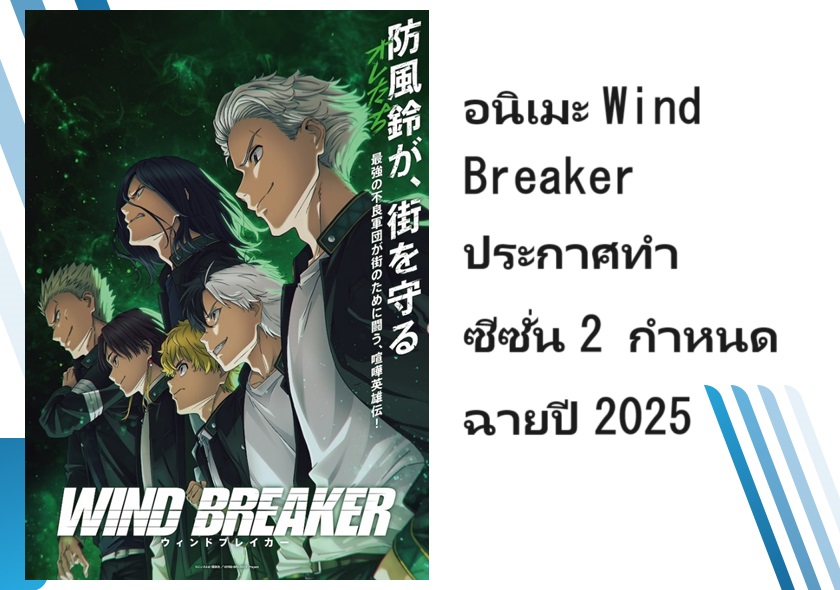 อนิเมะ Wind Breaker (วินด์เบรกเกอร์) ประกาศทำซีซั่น 2 อย่างเป็นทางการ โดยมีกำหนดออกอากาศในปี 2025