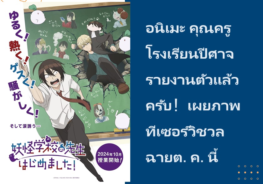 อนิเมะ คุณครูโรงเรียนปีศาจ รายงานตัวแล้วครับ! (Youkai Gakkou no Sensei Hajimemashita!) เผยภาพทีเซอร์วิชวล พร้อมประกาศนักพากย์หลักออกมาแล้ว