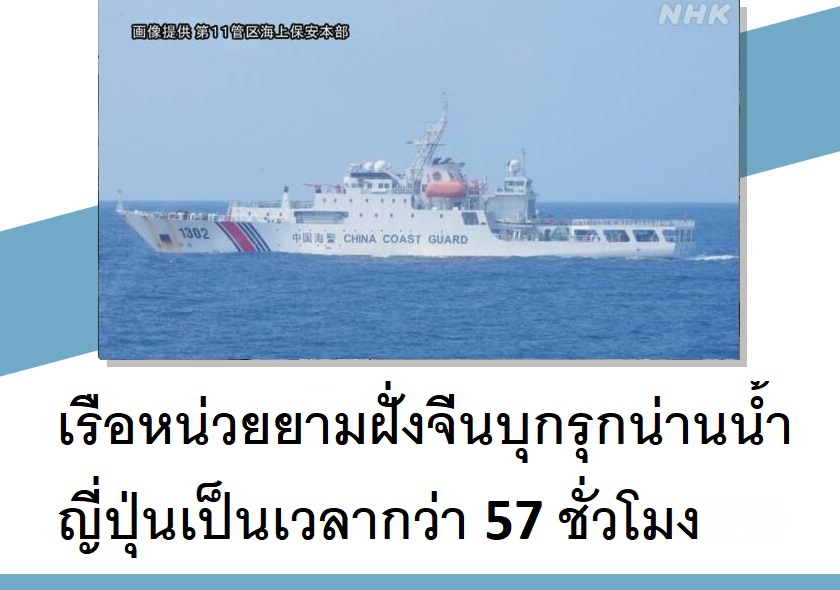เรือหน่วยยามฝั่งจีนบุกรุกน่านน้ำญี่ปุ่นเป็นเวลากว่า 57 ชั่วโมง