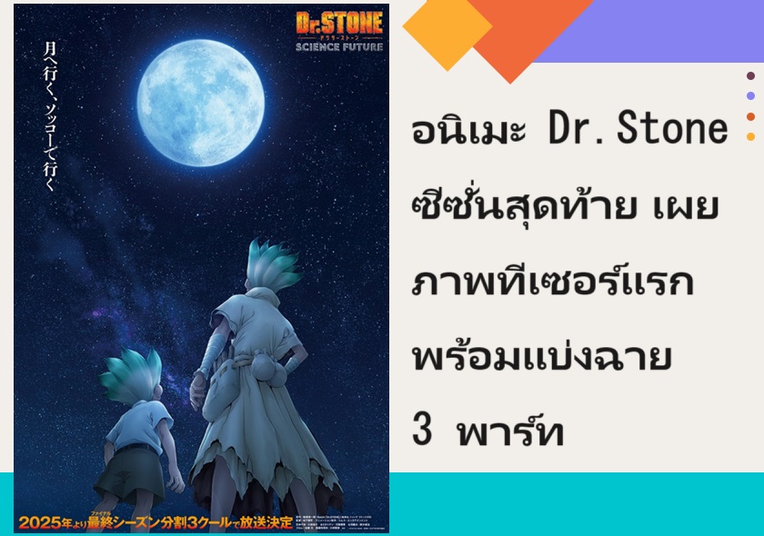 อนิเมะ Dr.Stone (ดร.สโตน) ซีซั่น 4 ซึ่งเป็นซีซั่นสุดท้าย หรือในชื่ออย่างเป็นทางการว่า "Dr.STONE SCIENCE FUTURE" เผยภาพทีเซอร์แรกออกมาแล้ว
