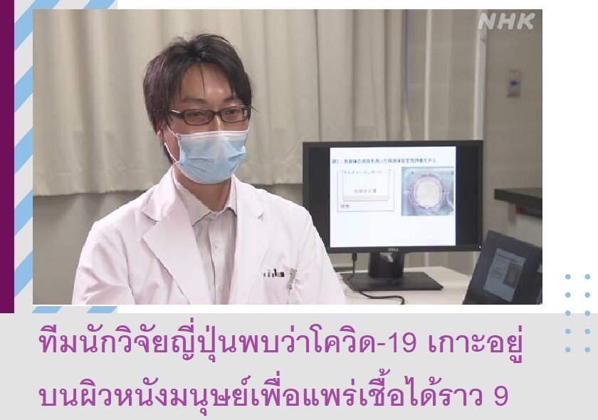 ทีมนักวิจัยญี่ปุ่นพบว่าโควิด-19 เกาะอยู่บนผิวหนังมนุษย์เพื่อแพร่เชื้อได้ราว 9 ชั่วโมง