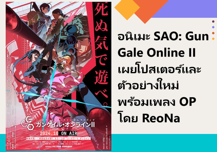 อนิเมะ Sword Art Online Alternative: Gun Gale Online II (ซอร์ด อาร์ต ออนไลน์ อัลเทอเนทีฟ: กันเกล ออนไลน์ ซีซั่น 2) ได้เผยโปสเตอร์และตัวอย่างใหม่ที่มาพร้อมกับเพลง OP โดย ReoNa ออกมาแล้ว