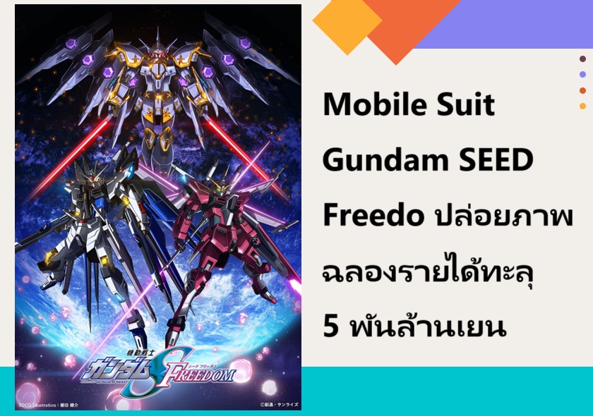 ภาพยนตร์อนิเมะ Mobile Suit Gundam SEED Freedom (โมบิลสูท กันดั้ม ซี้ด ฟรีด้อม) ทำรายได้ในญี่ปุ่นไป 5,048,982,557 เยน ด้วยยอดจำหน่ายตั๋ว 3,005,829 ใบ หลังจากเข้าฉายไปตั้งแต่วันที่ 26 มกราคมที่ผ่านมา