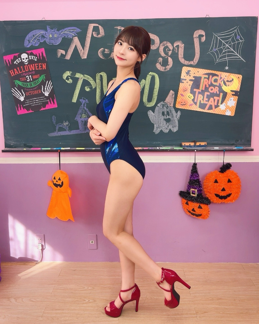 แคปชั่น : "ทำไมถึงเป็นชุดนักกีฬาว่ายน้ำ x ฮาโลวีนกันนะ"