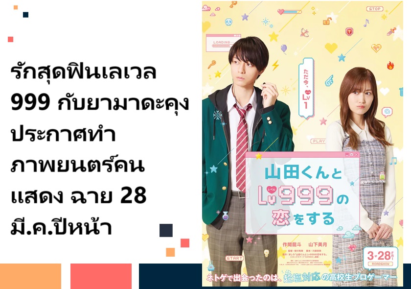 มังงะ รักสุดฟินเลเวล 999 กับยามาดะคุง (Yamada-kun to Lv999 no Koi wo Suru) ประกาศทำภาพยนตร์คนแสดง พร้อมเผยคีย์วิชวลและตัวอย่างแรกออกมาแล้ว