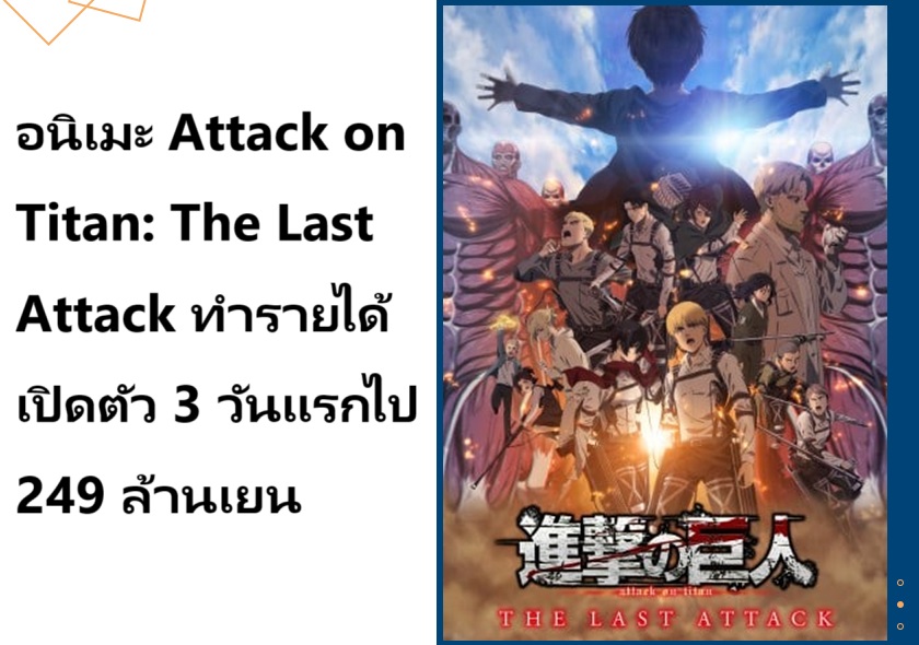 อนิเมะ Attack on Titan: The Last Attack ทำรายได้เปิดตัว 3 วันแรกไป 249 ล้านเยน