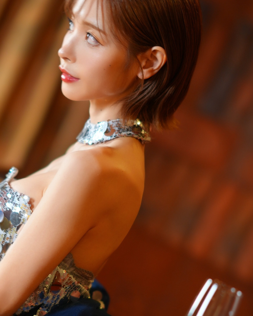 โมโมโนกิ คานะ นางเอก AV ชื่อดัง อวดความสวยแซ่บสะท้านในชุดเดรสส่องประกายระยิบระยับ