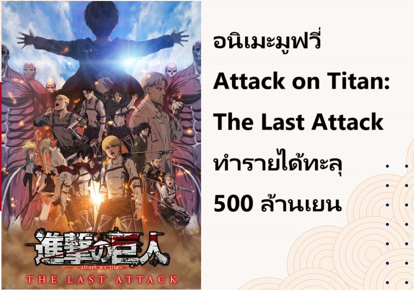 อนิเมะมูฟวี่ Attack on Titan: The Last Attack ทำรายได้ทะลุ 500 ล้านเยน