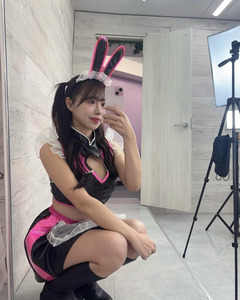 ในโพสต์ 1 คุณฮายาซากะโพสต์ภาพในชุดบันนี่เกิร์ลสุดน่ารักเซ็กซี่ พร้อมกับแคปชั่นเป็นอิโมริรูปหัวใจสีชมพู หัวใจสีดำ และโบว์สีชมพู