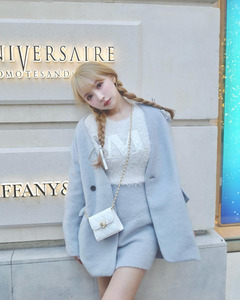 "ลุคโปรดของฉันในสัปดาห์นี้คือเสื้อไหมพรมลายโลโก้ที่เพิ่งวางขาย จับคู่กับสีฟ้าที่ลงตัวสุดๆ"