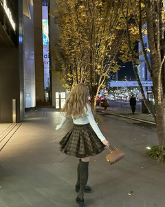 "กระโปรงลายตารางที่ดูมีวอลลุ่ม จะจับคู่กับรองเท้าบูทหรือถุงเท้าก็น่ารักทั้งนั้น"