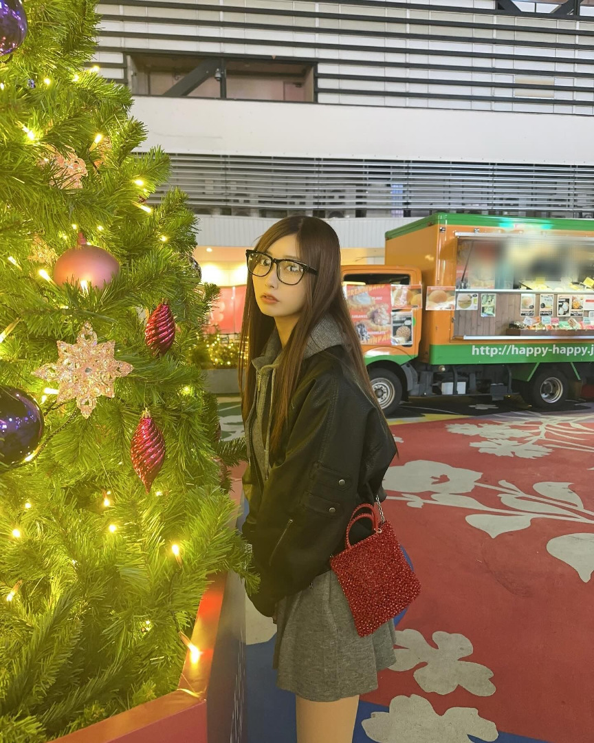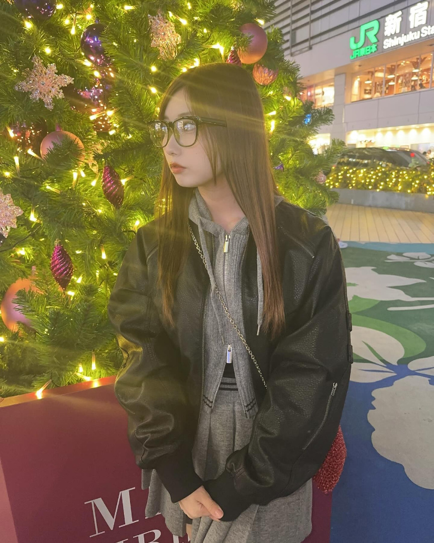 คุณไอซาวะโพสต์ภาพในลุคสาวแว่นคู่กับต้นคริสต์มาส พร้อมกับแคปชั่นว่า "กินเมล่อนปังจากร้านด้านหลังกันแล้วใช่ไหม"