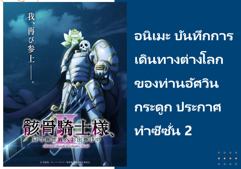 อนิเมะ บันทึกการเดินทางต่างโลกของท่านอัศวินกระดูก (Gaikotsu Kishi-sama, Tadaima Isekai e Odekakechuu) ประกาศทำซีซั่น 2 พร้อมกับเผยภาพทีเซอร์วิชวลแรกออกมาแล้ว