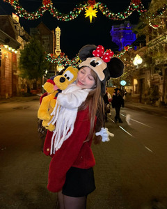 คุณมิคามิโพสต์ภาพในลุคแฟชั่นฤดูหนาวตอนไปเที่ยวสวนสนุกโตเกียวดิสนีย์ พร้อมแคปชั่นดังนี้