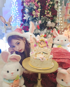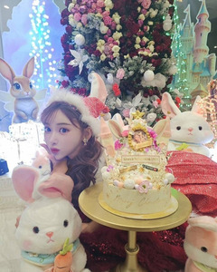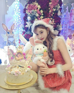 "หลังจากหายดี เพื่อนก็นำเค้กมาให้ เลยได้เจอซานต้าช้าไปหน่อย ในที่สุดก็พร้อมจะข้ามปีแล้ว! สุขสันต์วันคริสต์มาสและปีใหม่!"