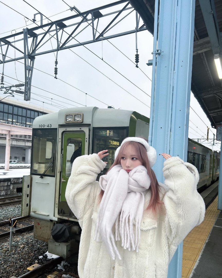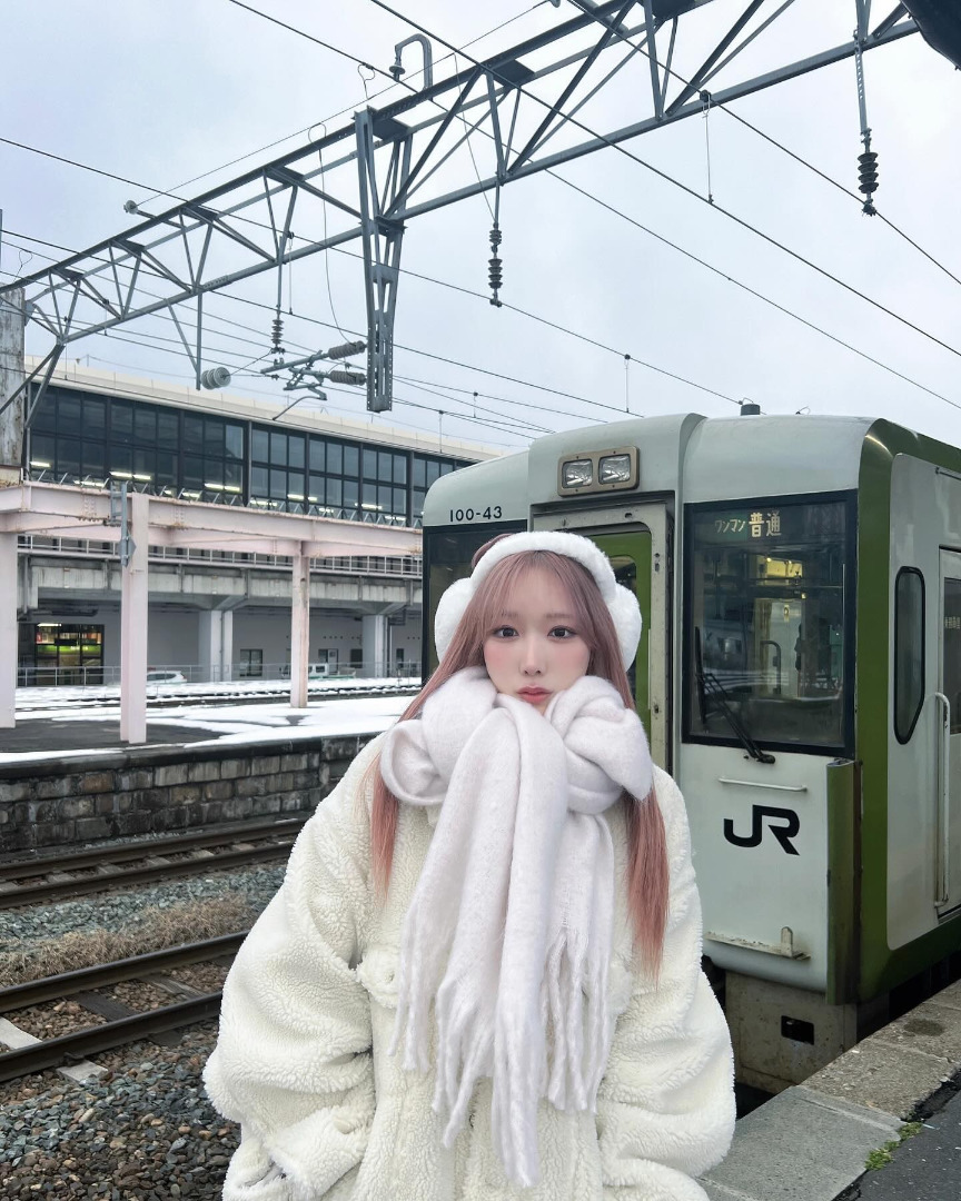 คุณโคโยอิโพสต์ภาพในชุดแฟชั่นฤดูหนาวกลางหิมะในทริปวันหยุดปีใหม่ พร้อมแคปชั่นว่า "ทริปวันหยุดปีใหม่ ระหว่างเดินทางสู่โลกอันขาวโพลน"