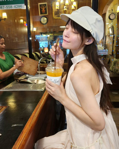 ในโพสต์ 1 คุณยางิโพสต์ภาพขณะนั่งดื่มน้ำส้มคั้นที่ร้านน้ำแห่งหนึ่งในกรุงเทพ พร้อมแคปชั่นเป็นอิโมจิรูปส้ม