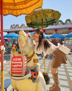 คุณยางิโพสต์ภาพที่ถ่ายตอนไปเที่ยววัดสมานรัตนาราม พร้อมแคปชั่นแฮชแท็กต่างๆ เช่น ประเทศไทย, วัดสมานรัตนาราม, ทริปครอบครัว เป็นต้น