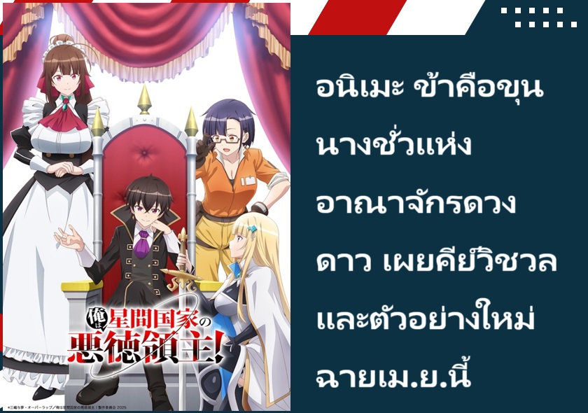 อนิเมะ ข้าคือขุนนางชั่วแห่งอาณาจักรดวงดาว (Ore wa Seikan Kokka no Akutoku Ryoushu!) ได้เผยภาพคีย์วิชวลใหม่ ตัวอย่างใหม่ และนักพากย์เพิ่มเติมออกมาแล้ว